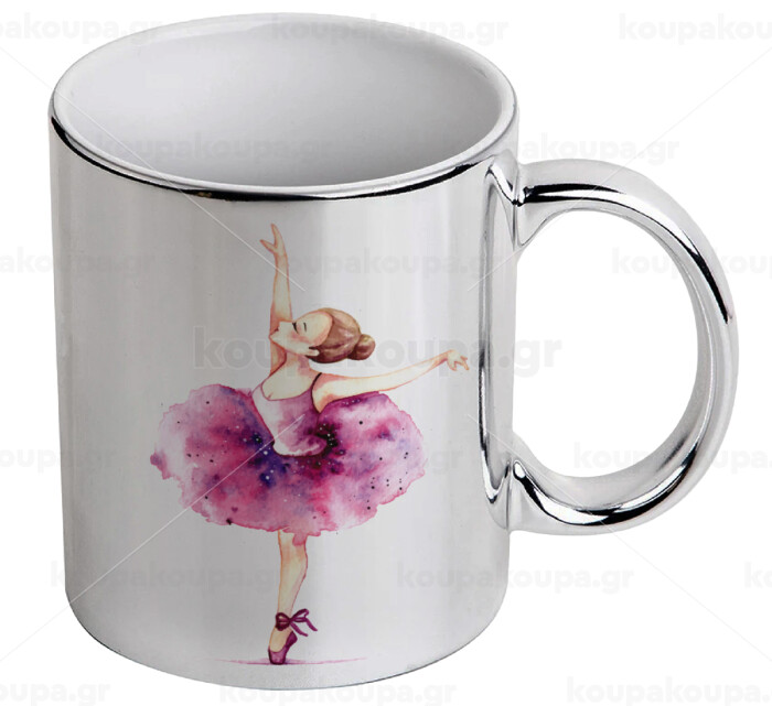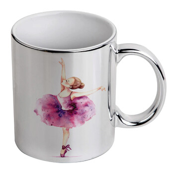 Ballerina watercolor, Mug ceramic, silver mirror, 330ml