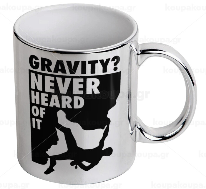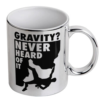 Gravity? Never heard of that!, Mug ceramic, silver mirror, 330ml
