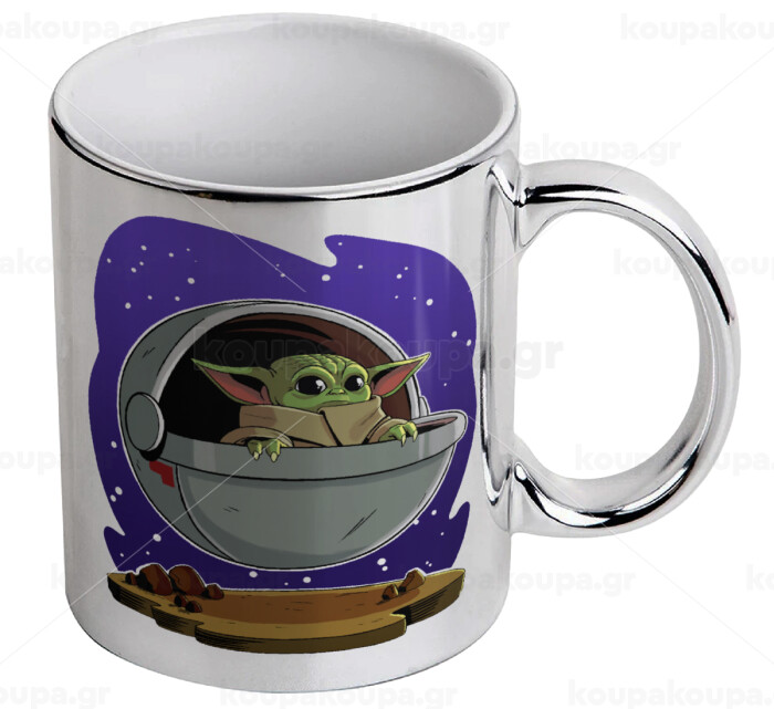 Baby Yoda mandalorian, Mug ceramic, silver mirror, 330ml