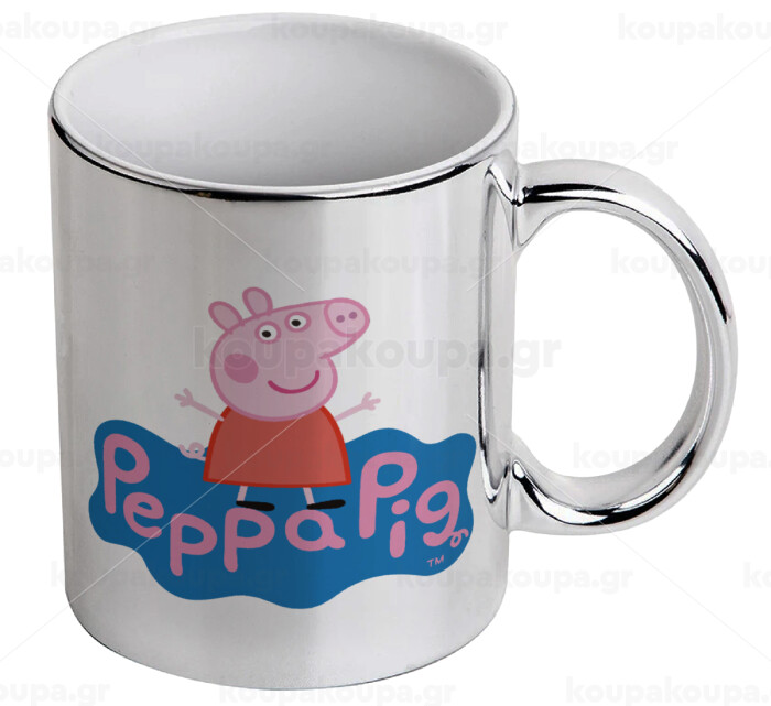 Πέππα το γουρουνάκι μπλε με όνομα, Mug ceramic, silver mirror, 330ml