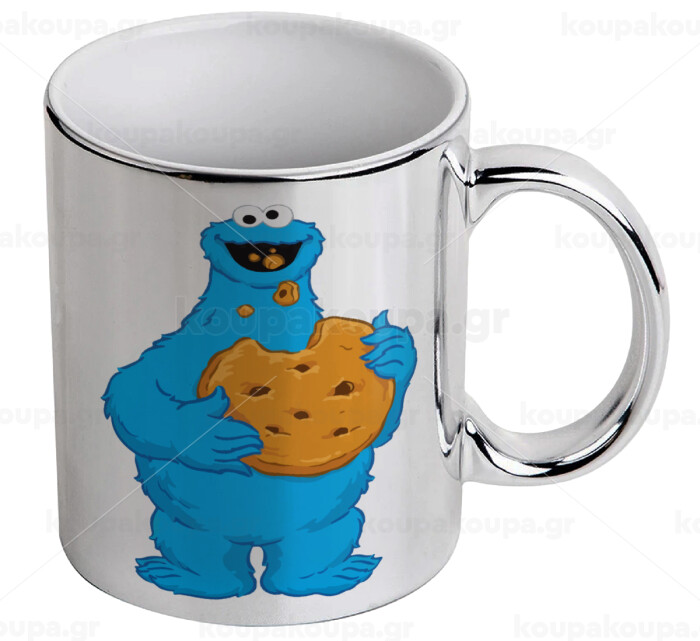 Cookie Monster, Mug ceramic, silver mirror, 330ml