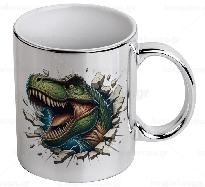 Dinosaur break wall, Mug ceramic, silver mirror, 330ml