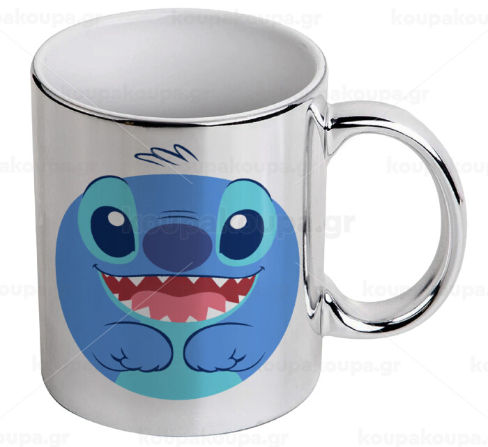 Lilo & Stitch blue, Mug ceramic, silver mirror, 330ml