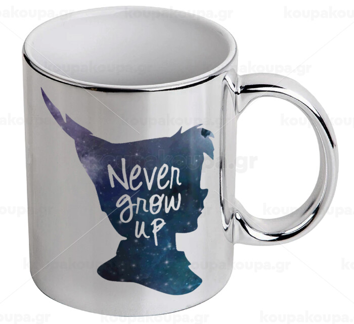 Never Grow UP, Mug ceramic, silver mirror, 330ml