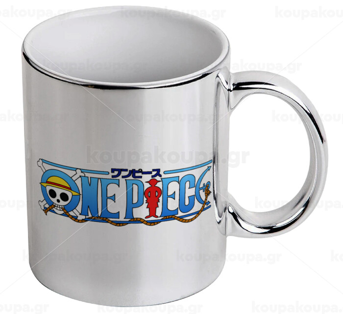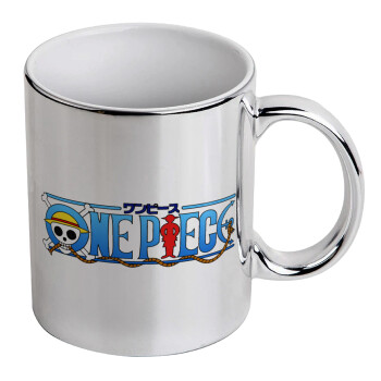 Onepiece logo, Mug ceramic, silver mirror, 330ml