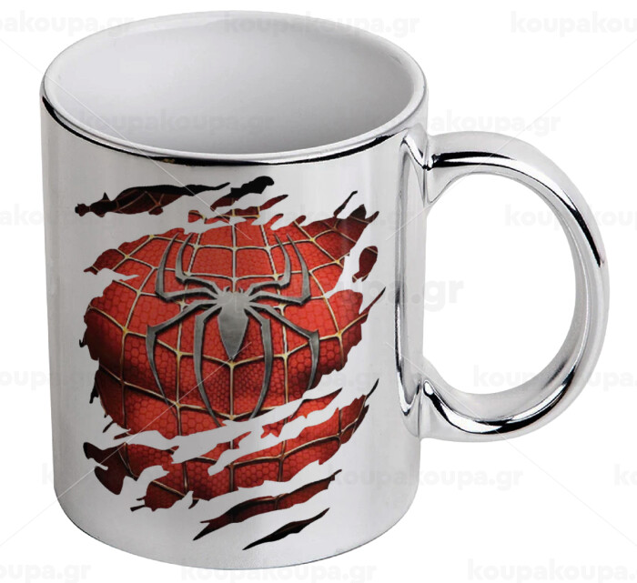 Spiderman cracked, Mug ceramic, silver mirror, 330ml