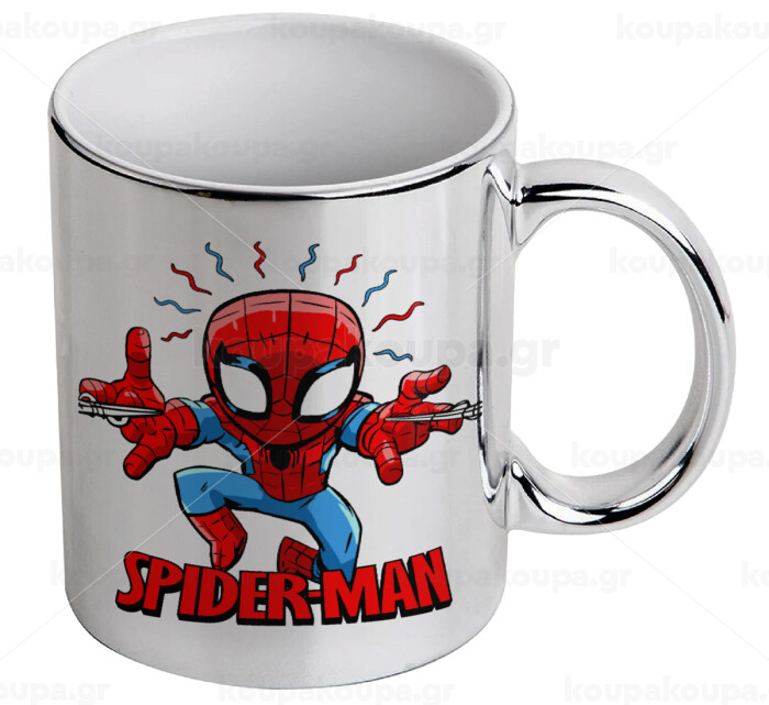 Spiderman flying, Mug ceramic, silver mirror, 330ml