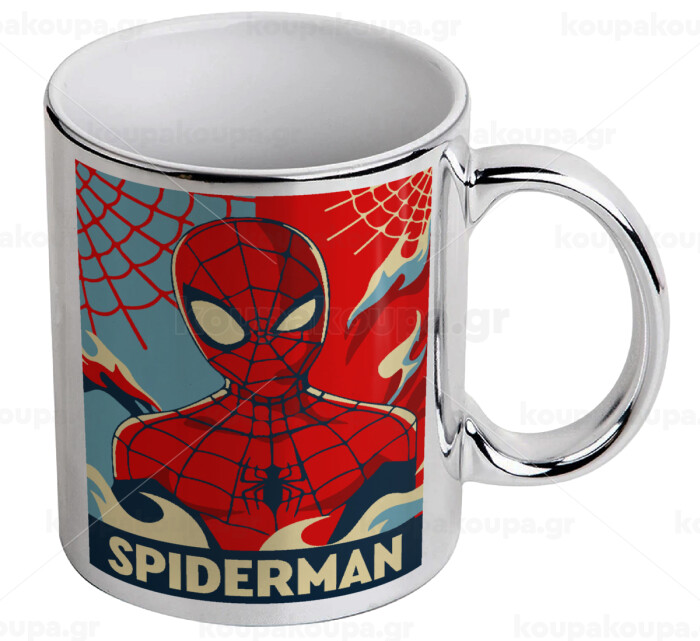 Spiderman kid, Mug ceramic, silver mirror, 330ml