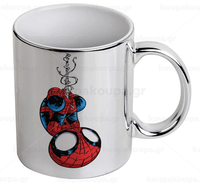 Spiderman upside down, Mug ceramic, silver mirror, 330ml