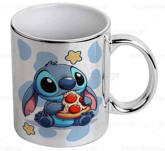 Stitch Pizza, Mug ceramic, silver mirror, 330ml