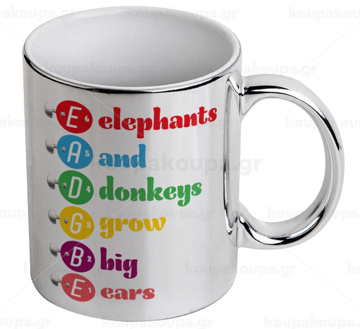 Elephants And Donkeys Grow Big Ears, Mug ceramic, silver mirror, 330ml