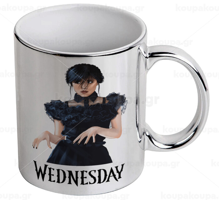 Wednesday Adams, dance with hands, Mug ceramic, silver mirror, 330ml