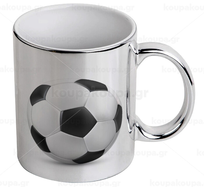 Soccer ball, Mug ceramic, silver mirror, 330ml