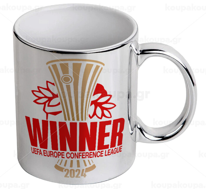 Europa Conference League WINNER, Mug ceramic, silver mirror, 330ml