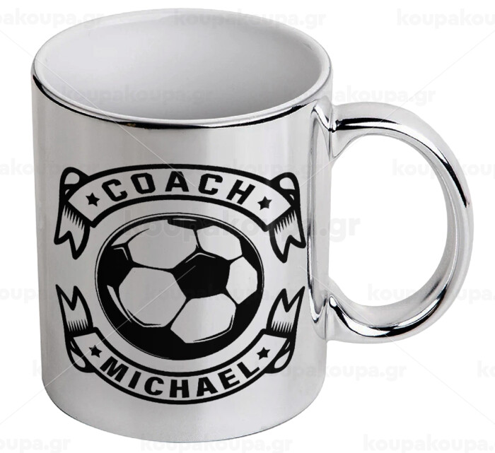 Soccer coach, Mug ceramic, silver mirror, 330ml