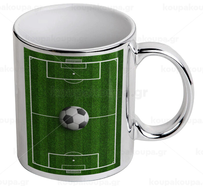 Soccer field, Γήπεδο ποδοσφαίρου, Mug ceramic, silver mirror, 330ml