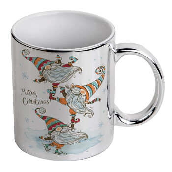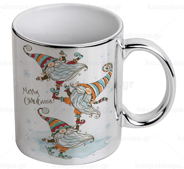 Christmas nordic gnomes, Mug ceramic, silver mirror, 330ml