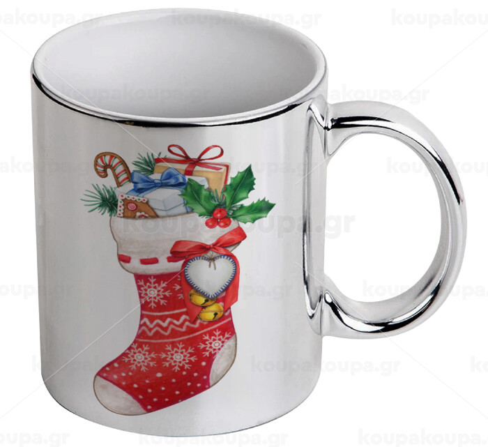 Xmas boot, Mug ceramic, silver mirror, 330ml