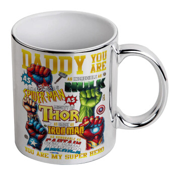 Daddy You Are my Hero, Mug ceramic, silver mirror, 330ml