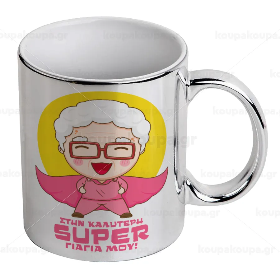 To my best Super Grandma!, Mug ceramic, silver mirror, 330ml