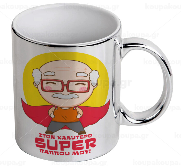 To my best Super Grandpa!, Mug ceramic, silver mirror, 330ml