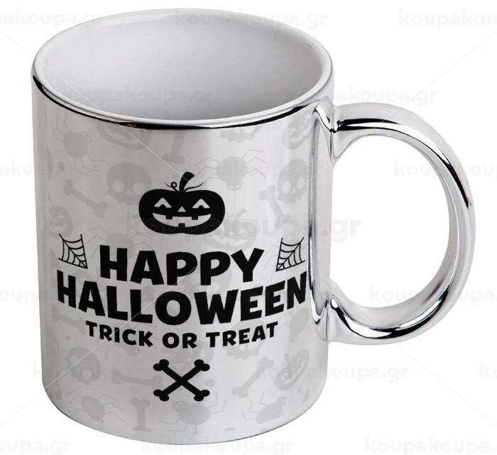 Happy Halloween pumpkin, Mug ceramic, silver mirror, 330ml