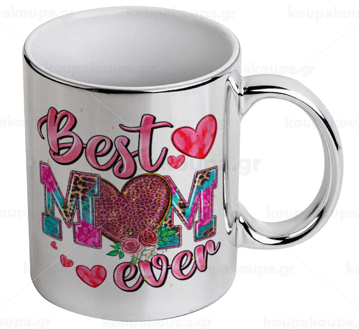 Best mom ever Mother's Day pink, Mug ceramic, silver mirror, 330ml