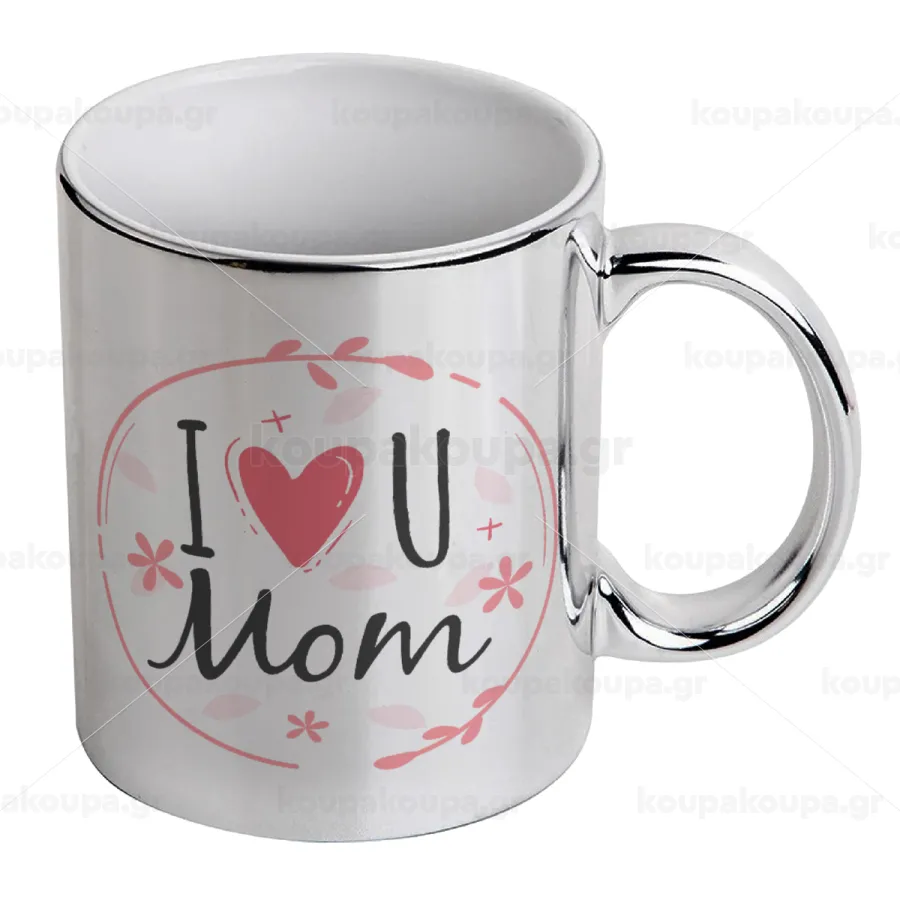 I Love you Mom pink, Mug ceramic, silver mirror, 330ml