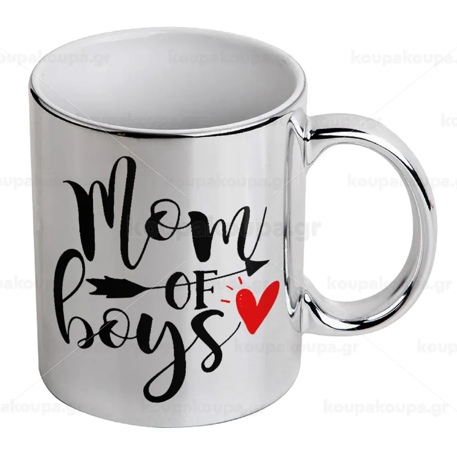 Mom of boys, Mug ceramic, silver mirror, 330ml