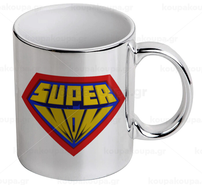 Super Mom 3D, Mug ceramic, silver mirror, 330ml