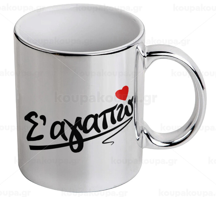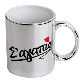 Σ΄ αγαπώ!!!, Mug ceramic, silver mirror, 330ml