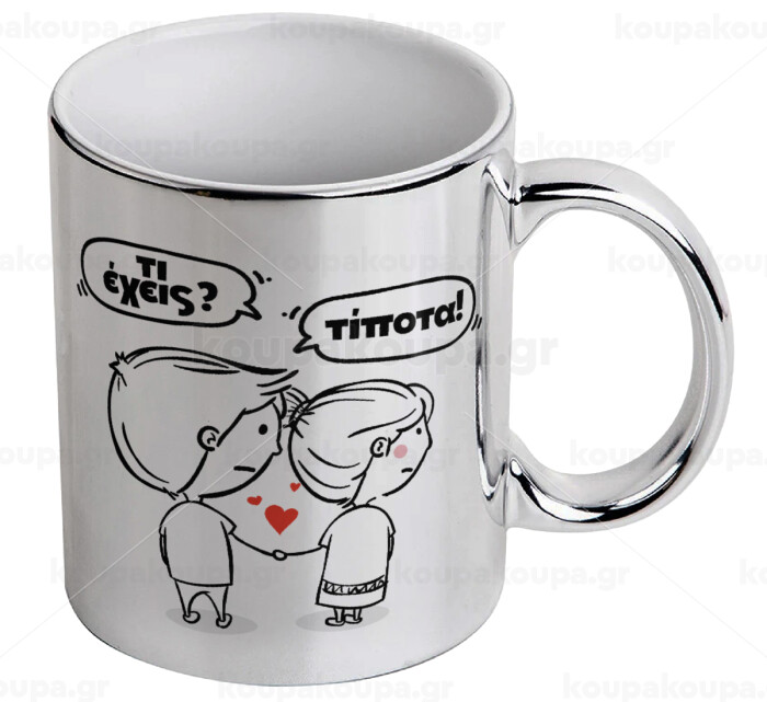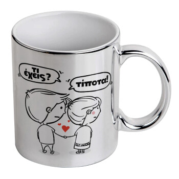 Τι έχεις? Τίποτα!, Mug ceramic, silver mirror, 330ml
