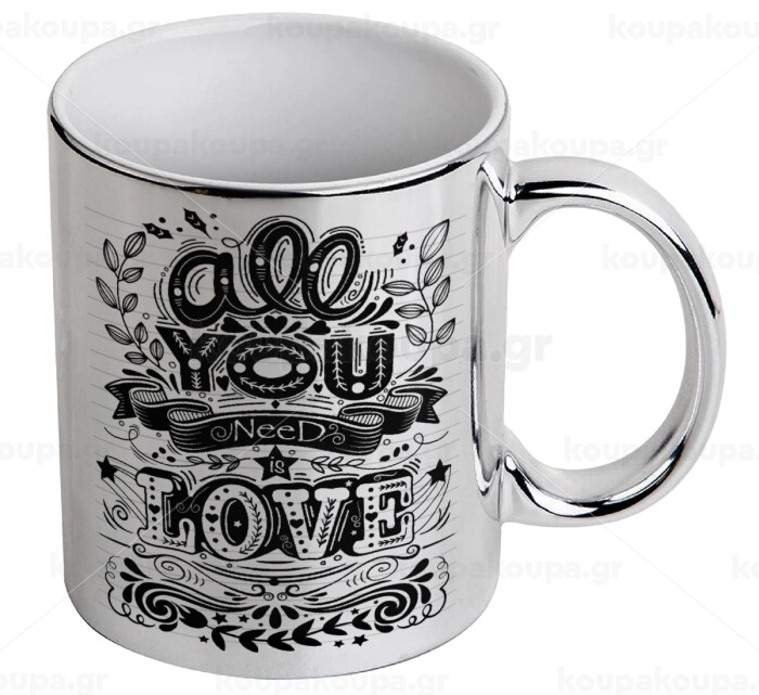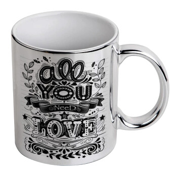 All you need is love, Mug ceramic, silver mirror, 330ml