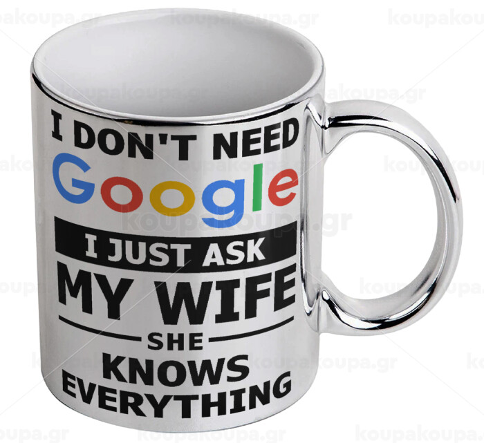 I don't need Google, just ask my WIFE, Mug ceramic, silver mirror, 330ml
