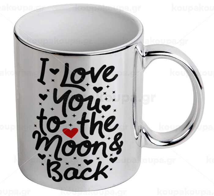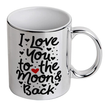 I love you to the moon and back with hearts, Mug ceramic, silver mirror, 330ml