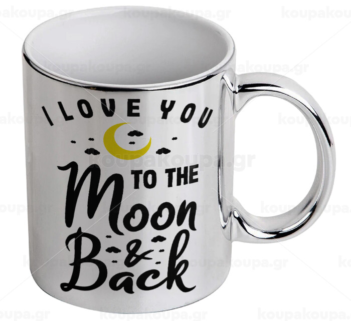 I love you to the moon and back, Mug ceramic, silver mirror, 330ml
