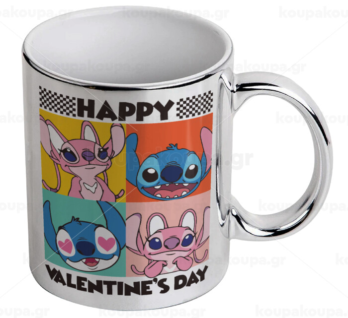 Lilo & Stitch Happy valentines day, Mug ceramic, silver mirror, 330ml