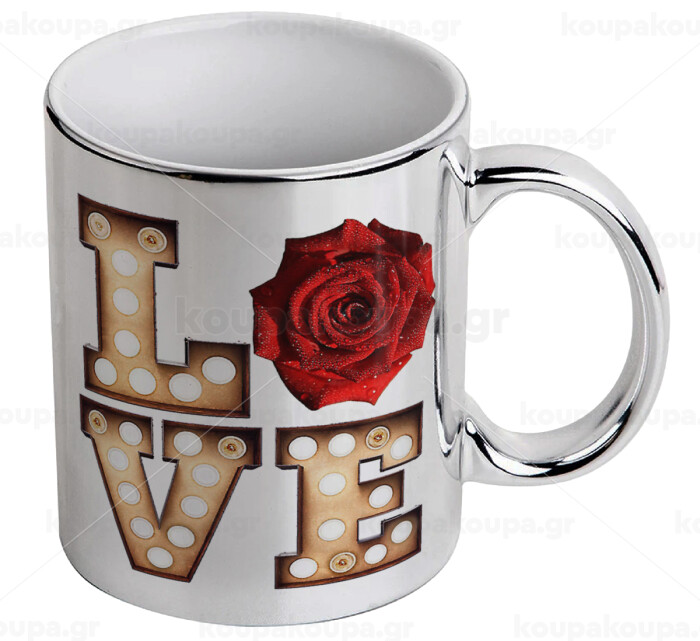 Love lights and roses, Mug ceramic, silver mirror, 330ml