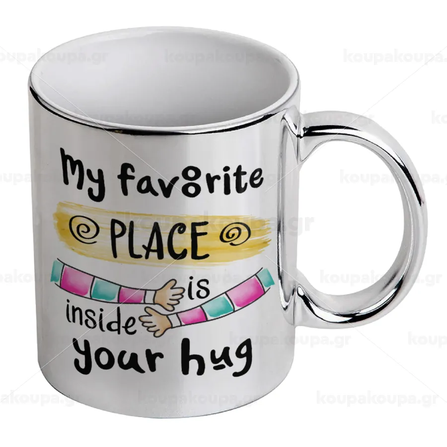 My favorite place is inside your HUG, Mug ceramic, silver mirror, 330ml