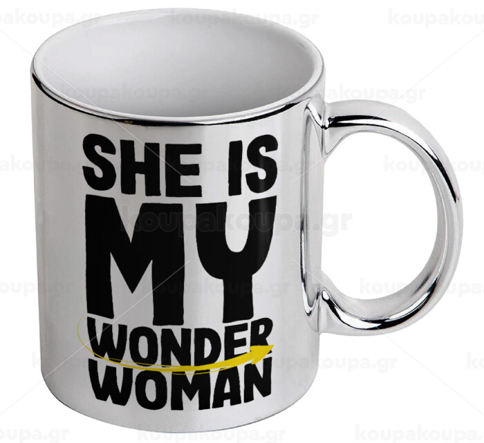 She is my wonder woman, Mug ceramic, silver mirror, 330ml