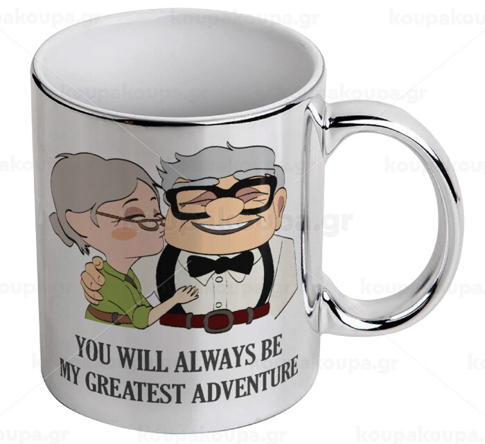 UP, YOU WILL ALWAYS BE MY GREATEST ADVENTURE, Mug ceramic, silver mirror, 330ml