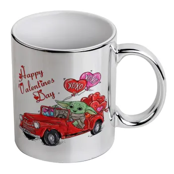 Yoda, happy valentines day (xoxo), Mug ceramic, silver mirror, 330ml