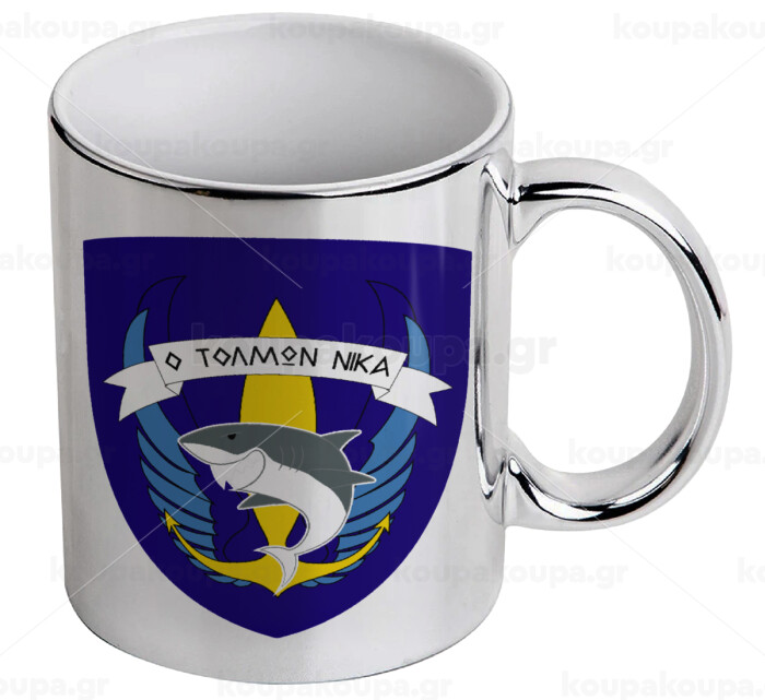 Hellas special force's shark, Mug ceramic, silver mirror, 330ml
