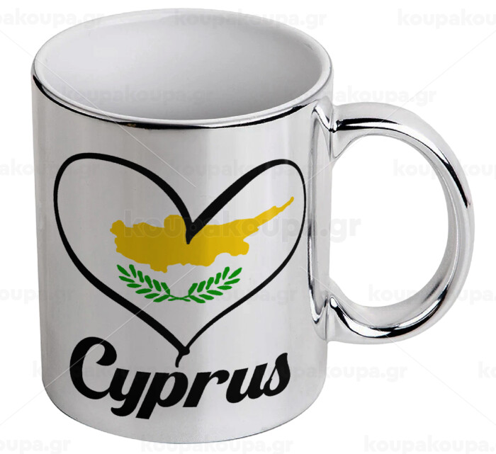 Cyprus flag, Mug ceramic, silver mirror, 330ml