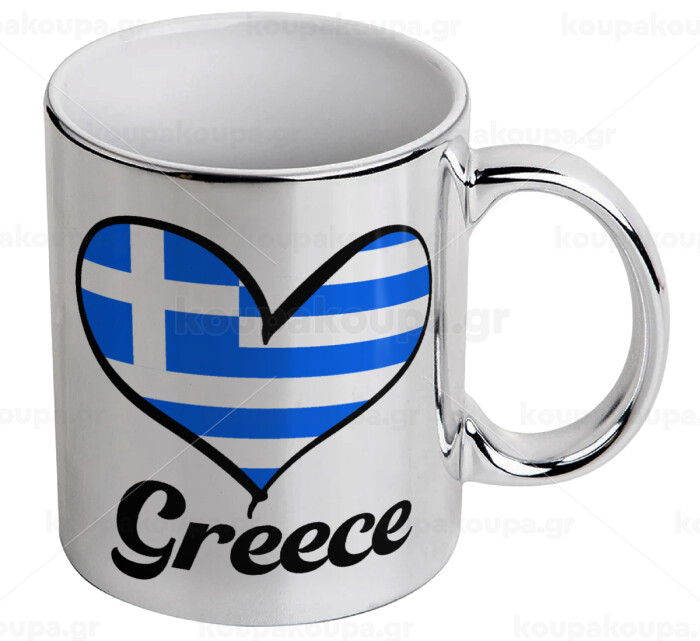 Greece flag, Mug ceramic, silver mirror, 330ml