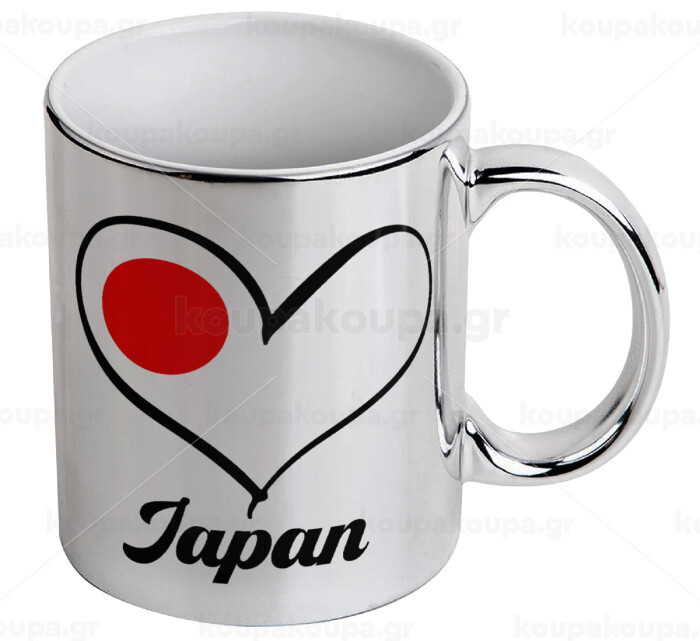Japan flag, Mug ceramic, silver mirror, 330ml