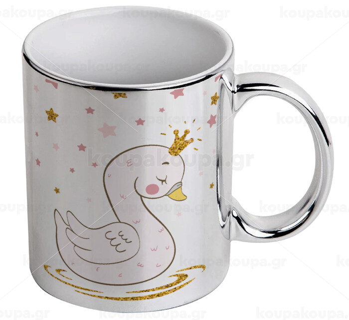 Crowned swan, Mug ceramic, silver mirror, 330ml