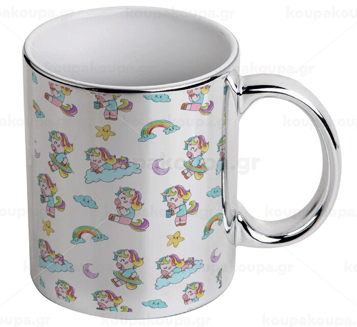 Unicorn pattern, Mug ceramic, silver mirror, 330ml