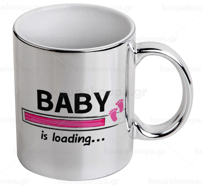 Baby is Loading GIRL, Mug ceramic, silver mirror, 330ml