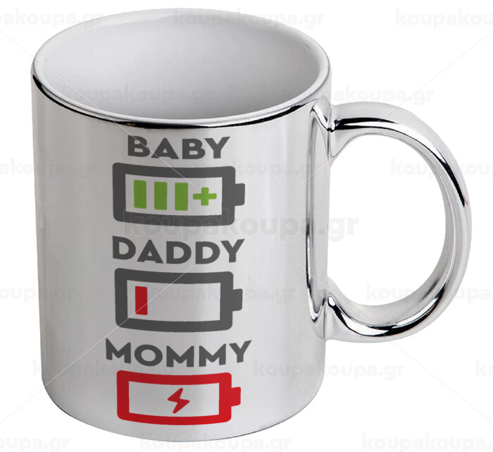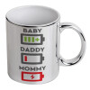 BABY, MOMMY, DADDY Low battery, Mug ceramic, silver mirror, 330ml